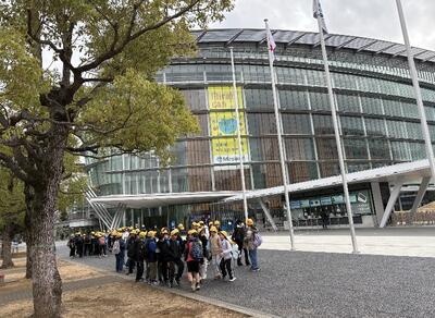 5年生はおいしいお弁当を食べ終えました。記念写真を撮り、いよいよ「そなエリア」に向かいます。