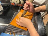 夕食の後、休憩を挟んで日光彫り体験をしました。