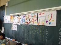 その後、新しい教室に入った子供たちを先生たちが腕をふるった黒板アートがお出迎え。