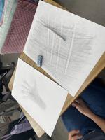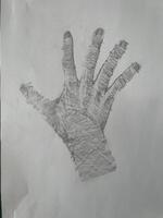 鉛筆や消しゴム、指を使い、さまざまな技法を教わりながら、手のデッサンを仕上げました。