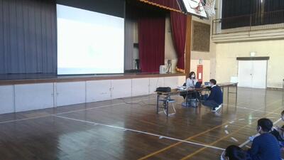 また、5校時には、本校出身の四国水族館の職員の方にも、オンラインで仕事についてのお話を伺うことができました。子ども達は、画面に集中して聞いていました。
