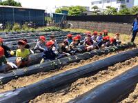 本日、学校の敷地の隣にある「わくわく農園」にサツマイモの苗を植えました。