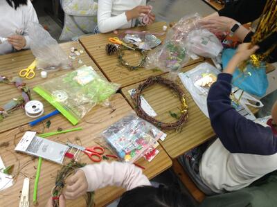 保護者の皆様、リースを作るにあたり、飾り付けのご準備をありがとうございました。また、本日お手伝いに来てくださった保護者の皆様、地域の皆様、ありがとうございました。