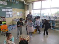 本日、地域のボランティアの方を「昔遊び名人」と称してお招きし、昔遊びの会を行いました。以前から取り組んでいる木ゴマ、けん玉に加え、おはじき、福笑い、だるま落とし、あやとり、めんこ、お手玉、折り紙の全9種類の昔遊びに挑戦しました。中には「名前も聞いたこともない」と、子ども達が知らない遊びもありましたが、名人達の丁寧な御指導のおかげで、どの遊びも楽しそうに取り組むことができていました。