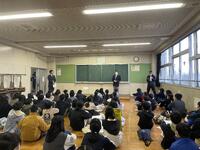 次に、校長先生より御挨拶をいただきました。高谷中学校の様子も教えていただきました。