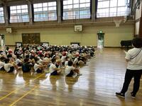 次に、生徒指導の担当の先生から、今月の生活目標「人の話を静かに聴こう」についてお話がありました。子ども達は、目と耳と心を使って聴いていました。