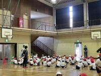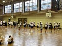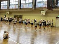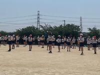 今日は、体育館で細かな動きの確認をした後、校庭で隊形移動の練習をしました。
