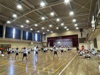 まず、体育館で細かな動きの練習をし、校庭に出て、音楽に合わせて踊りました。