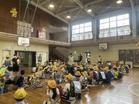 最後に、残っている児童が体育館に集まり、コースごとに職員が付き添い、集団下校をしました。