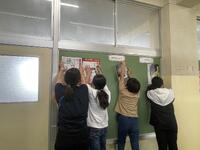 今月の予定の掲示物を作ったり、校内の掲示物の貼り替えをしたりしています。