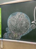 31日は先生方が、黒板に絵を描き、夏休み明けの子ども達を喜ばせようと準備していました。