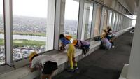 145メートルの真下が覗ける、東京タワー名物「スカイウォークウィンドウ」には、皆恐る恐る乗っていました。