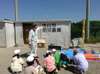 4年生は社会科の学習で、防災倉庫見学を行いました。市川市役所地域防災課の職員の方をお招きして、防災倉庫の役割や備えることの大切さ等を教えていただきました。