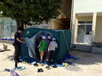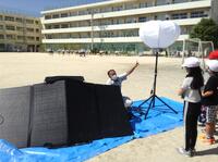 電気が止まってしまったときに使う「バルーンライト」を見せていただいたり、テントの中に入らせていただいたりしました。