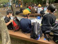 現代産業科学館に到着し、外でお弁当を食べました。