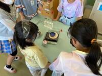 食塩水を熱すると、何やら白い個体が出てきて、「先生、塩が出てきましたー」と、一度溶けた塩が再び現れたことに大喜びな様子でした。