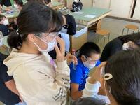 6年生は、理科の学習で実験を行いました。今回行った実験は、これまでの実験と違って塩酸などの少し危険や薬品を扱う実験でした。子ども達は、薬品の扱い方を学び、防護メガネをして実験を行いました。