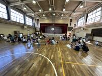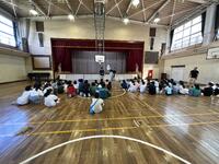 1時間目は、体育館でレクリエーションを行い、片岡安祐美さんと子どもたちの仲を深めました。