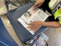 次に、土器を実際に触ったり、石器を使って紙を切ったりしました。本物の土器を触れることにとても興味深々でした!また、石器を実際に使い、新聞紙を切りました。とても切れ味が良くてびっくりしている様子でした。