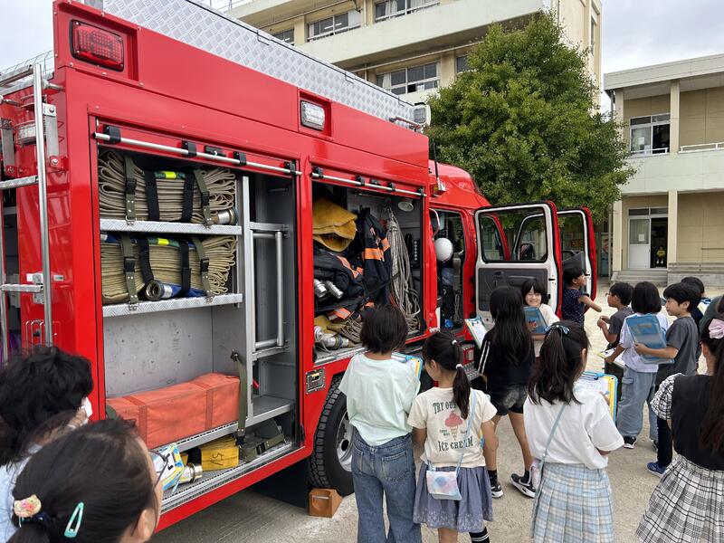 その後、消防車の中を見せていただいたり、様々な器具を持ってみたりと貴重な体験をさせていただきました。
