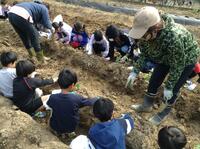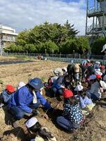 虫を相手に苦戦する子どももいましたが、大小様々なサツマイモがとれて、子どもたちは笑顔いっぱいでした。