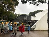 雨のため、バスまでレインコートを着用しての移動となりましたが、歩き方も落ちついてできていました。