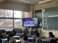 代表委員会が中心となって、体育館の舞台から各教室に演技の様子をオンラインで配信しました。1〜3年生の交流学級は、体育館で参観しました。