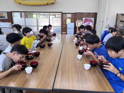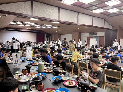 たくさんの活動を終えた児童は、豪華で盛りだくさんな夕食に目を輝かせています。