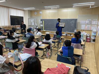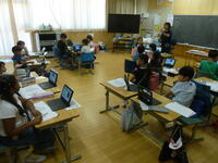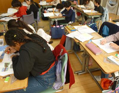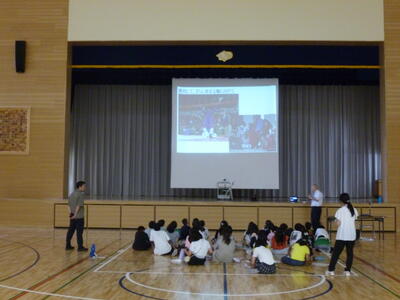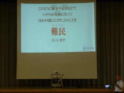 本日はゲストティーチャーを招いた学習です。オリンピックの話から難民の難しいお話もありましたが、しっかりと聞けていました。