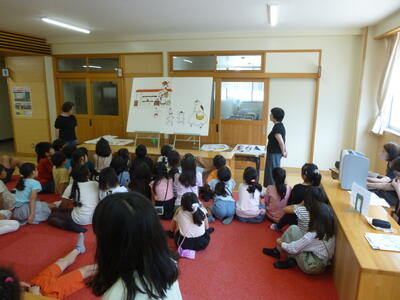 本日も1年生に向けて、ペープサートを行ってくださいました。
