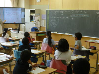 義務教育学校ならでは、の風景です。9年生は見守るだけではなく、対話しながら6年生に学習を促していました。また計算問題を出すだけではなく、文章題を紙に書いて、深い学びを促していました。