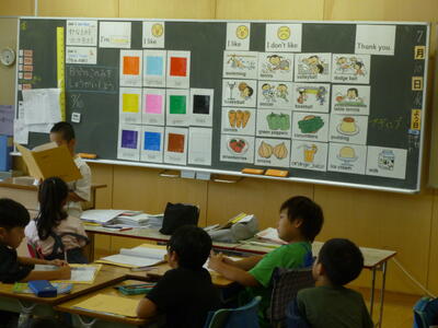 夏休み前最後の外国語活動の授業でした。みんな、楽しそうに英語で発表していましたね!!