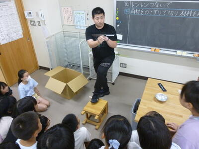 後期課程の技術科の先生がゲストティーチャーとして、ノコギリの使い方、釘の打ち方を教えてくれました。塩浜学園ならではの風景です。