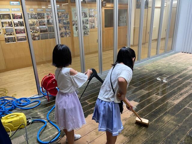 4年生の児童2名が、吹き抜けの床を掃除してくれました。