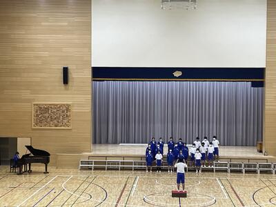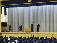 表彰では、後期課程の生徒が中心に行われました。多くの部活動で、これまでの積み重ねた結果が出たようです。また総体を境に9年生から7、8年生へバトンが渡されました。これからは、9年生は高校受験です。