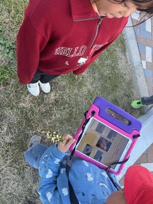 学校にある数台のタブレットを使って、まずは「写真を撮る」ことをめあてにしました。