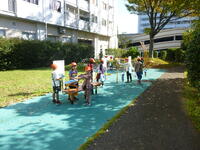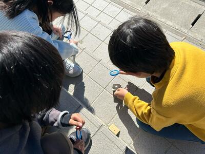 シャボン玉で遊びました。本日は気温も穏やかで、絶好のシャボン玉日和でした。前回は暑すぎて屋根のあるところで行いましたが、今回は元気いっぱい活動することができました。
