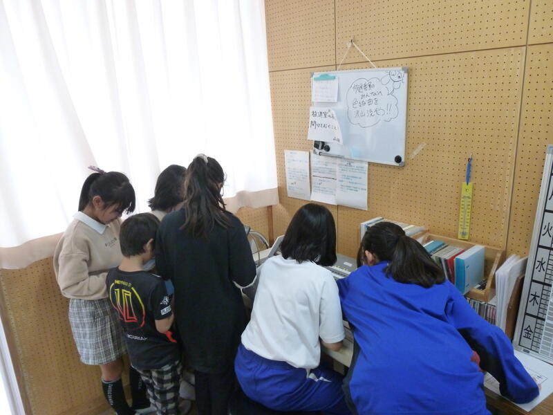 本日の「なかよしタイム」の様子です。上級生(中学生)が下級生(小学生)のために計画を考えています。