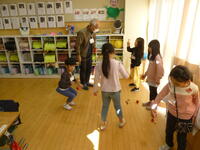 生活科で、「昔遊び」を学習しています。今回は新たに加わった『だるまおとし』です。