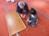 本日は昔遊びを地域の方々と行いました。黙々と…ですが笑顔で取り組むことができました。