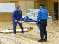 毛布の両脇を筒状に丸めると、担架の役割を果たすことも学ぶことができました。