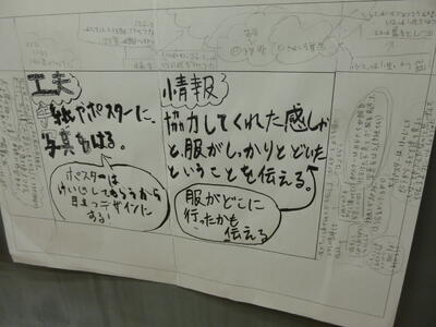 「届けよう 服の力 プロジェクト」では、皆様からのご協力もあり、無事、学校・地域・保護者の皆様からの着なくなった服(寄付)の回収が終わり、その寄付に対し、その感謝をどのように伝えるか…について話し合いを行いました。