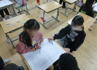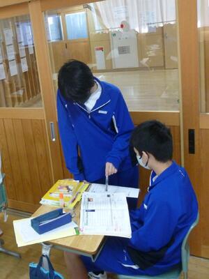 6年生 算数の様子です。難しい単元で、9年生が先輩として、先生として、助けに来てくれました。
