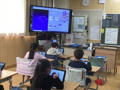 本日の算数はまとめとして、タブレットを使い、web上でまとめ問題を回答しました。