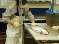 店側のご厚意により、普段は決して入れないバックヤードに入れてもらえたり、鮮魚売り場では、ブリを捌くところを実際に見せてもらったり、大満足の見学となりました。