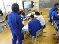 本日、定期試験2日目が終わりました。今回の試験後は、7・8年生ともにタブレットを出して、パワーポイントでの資料作成と話し合いを行っていました。