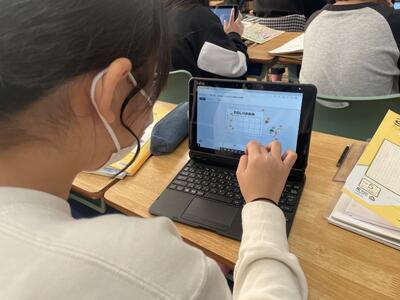 本日はタブレットとWi-Fiを使い、web上のサイトを使って、学校にあるいろいろなもの集め、まとめまで行いました。どのグループも協力しあったり、悩んだりしながら取り組みました。