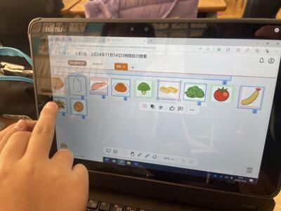 「バランスのよいお弁当を作ろう」をテーマに、タブレット操作をしながら活動しています。