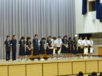 表彰では、後期課程の生徒が中心に行われました。多くの部活動で、これまでの積み重ねた結果が出たようです。また総体を境に9年生から7、8年生へバトンが渡されました。これからは、9年生は高校受験です。