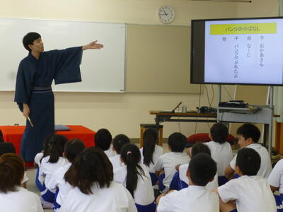 本日、桂れん児さんをお迎えし、落語教室を行いました。